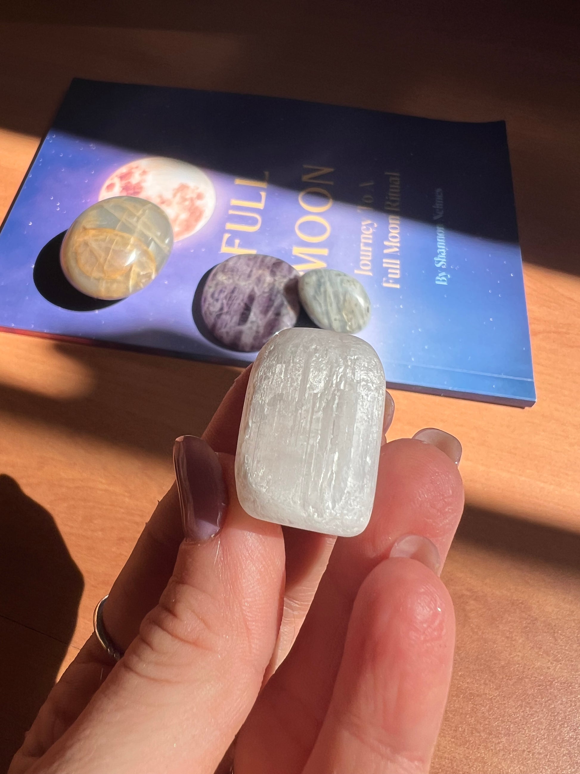 Selenite Tumble – Cleanses the aura and charges your crystals with lunar light.